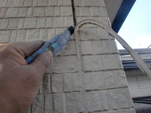 3面接着を防ぐため、今回は目地が深いのでバックアップ材をいれます。